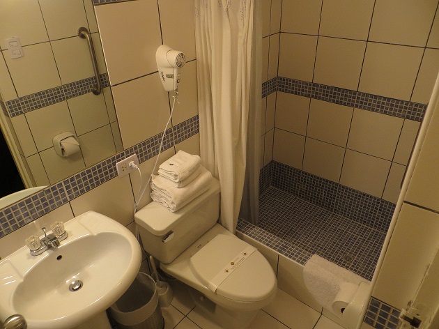 La salle de bain est très propre, avec une douche, deux petits savons et shampoings. Simple mais jolie. Petit hic: j’ai pris une douche, l’eau était froide même après avoir laissé couler quelques minutes. L’électricité coûte très cher au Pérou, les gens allument généralement le chauffe eau avant de prendre la douche. Ce sont des choses qui arrivent régulièrement. N’hésitez pas à appeler la réception pour leur dire.