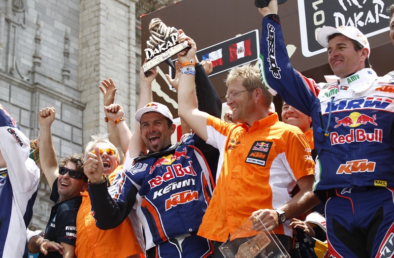 Le Français Despres arrivera en grand vainqueur du Dakar 2012 dans la catégorie moto, avec l’espagnol Marc Coma en 2e place et le Potugais Rodrigues en 3e place.