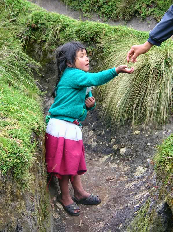 eu importe ce qu’ils vendent ou même pour une photo, ne leur donnez jamais d’argent. Pensez-y bien, c’est encourager le fait qu’ils n’aillent pas à l’école, alors qu’elle est publique et gratuite pour tous au Pérou. L’argent va directement à des adultes qui les utilisent comme revenu. Il existe même des gens qui font le tour des maisons le matin en camionnette pour aller chercher les enfants, les font travailler (vente d’objets et mendiants) en donnant un petit pourcentage à la famille et les ramènent le soir.